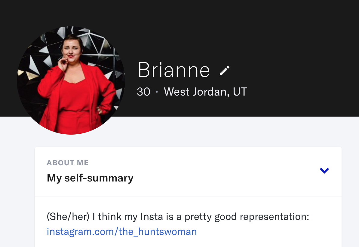 Besides WooPlus, I’ve personally had the most luck on OkCupid (for queer dating). I’ve thought about downloading HER, the dating app for Lesbian, Bisexual and queer people. I’ve been told the options in Salt Lake City aren’t great, so gonna leave that alone for now!